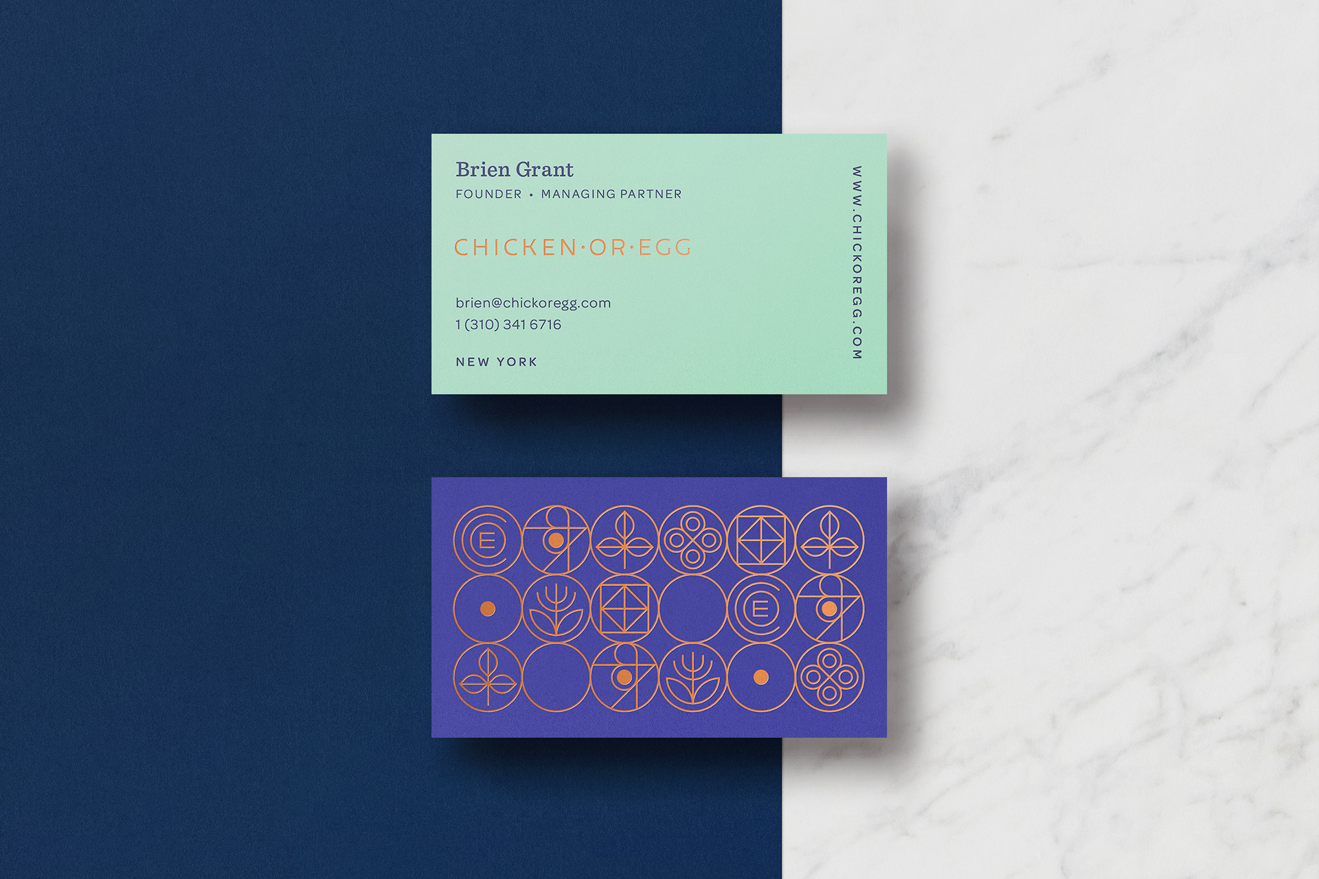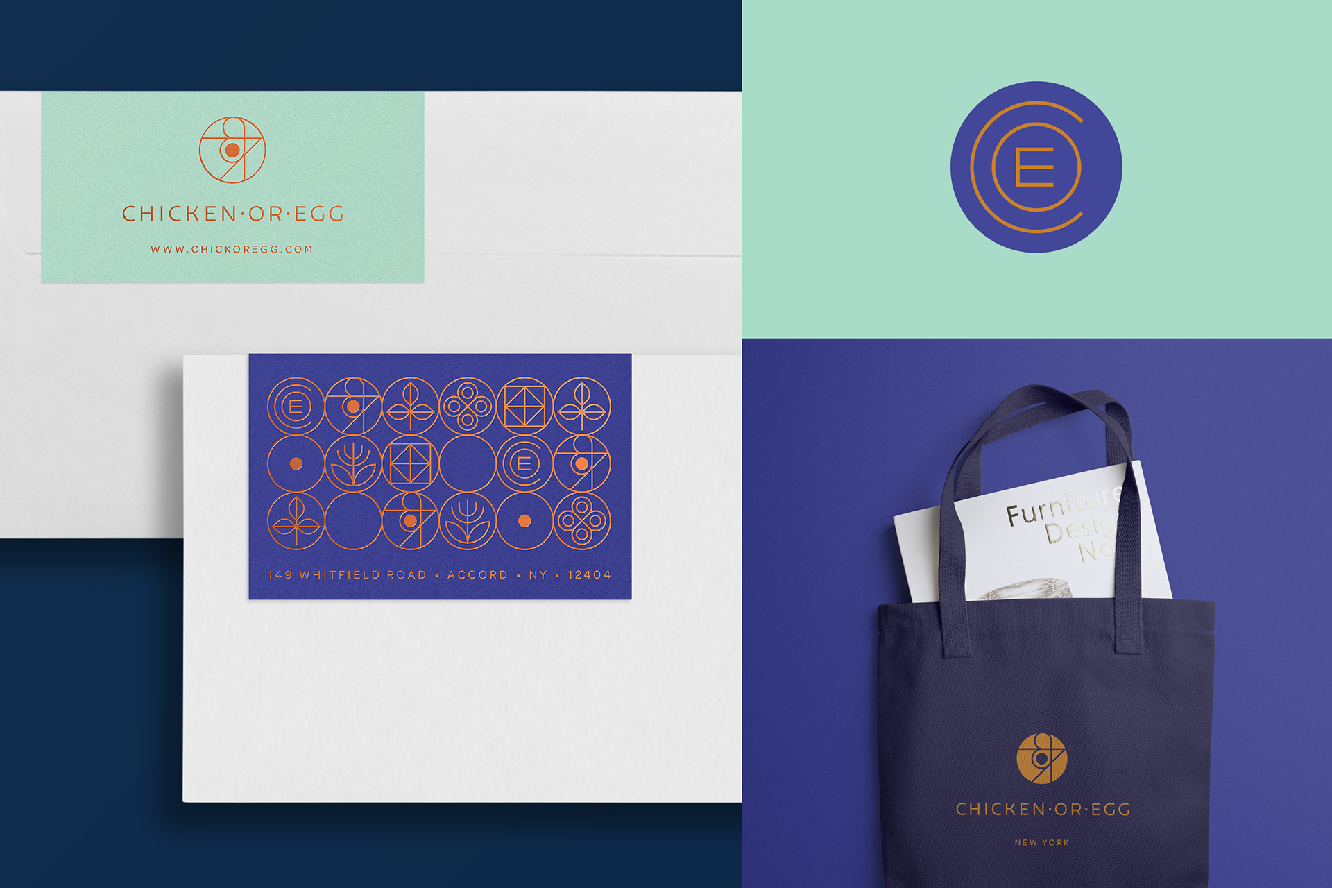 After moving to upstate New York, COE owners Brien and Jen wanted to speak to their rustic setting with the branding of their new strategy firm. Along with nature based icons the palette played with colors found in chicken eggs and was used alongside a vibrant cobalt blue and copper foil.