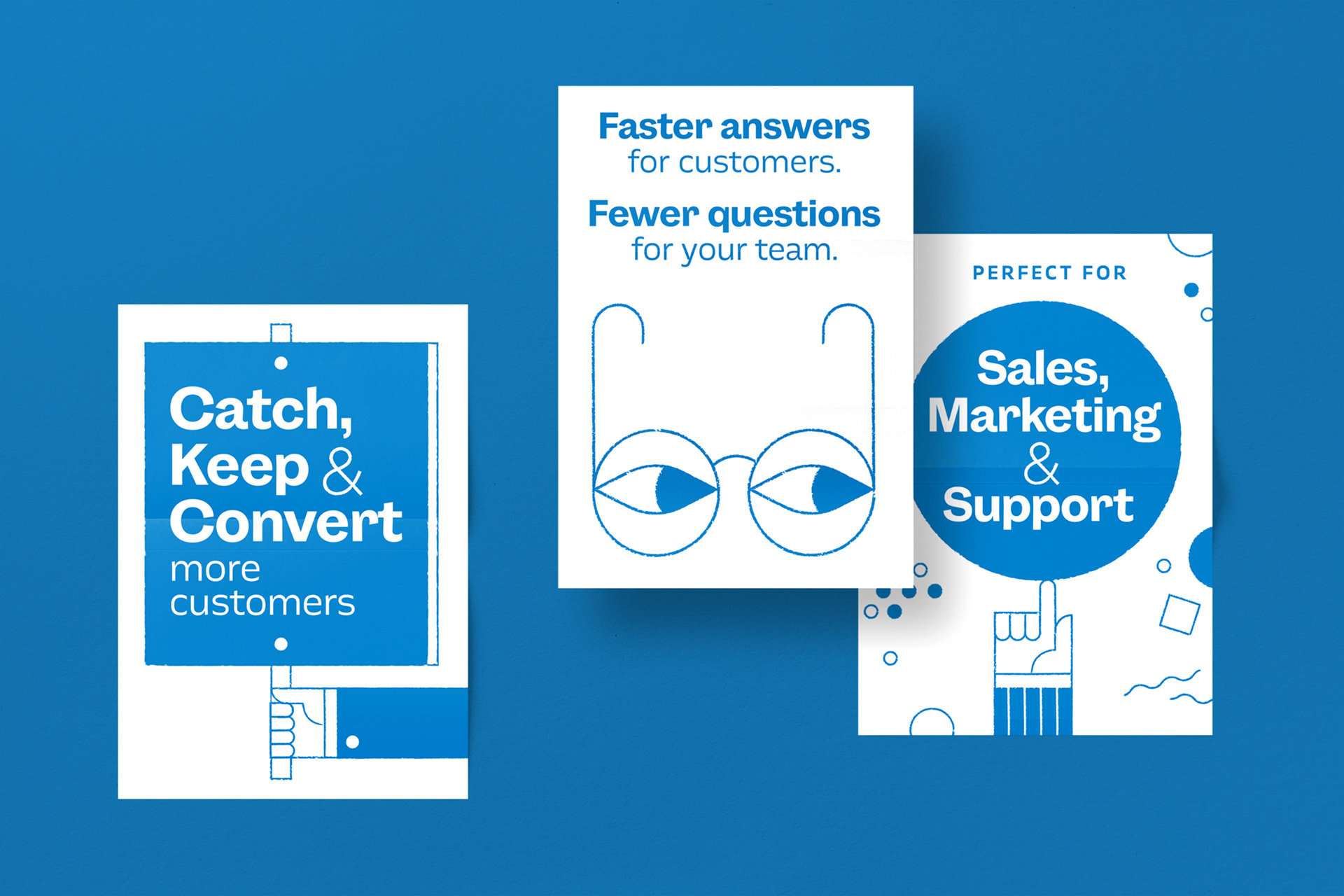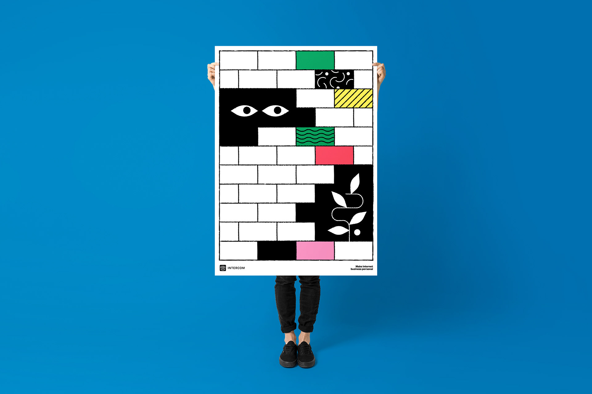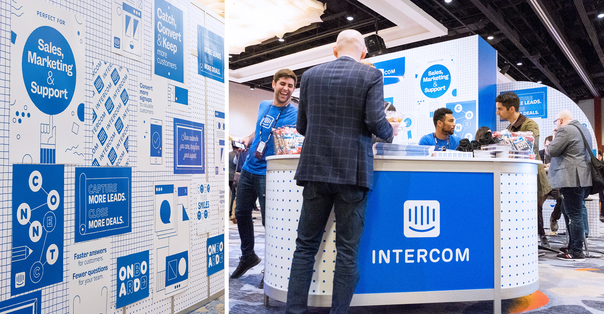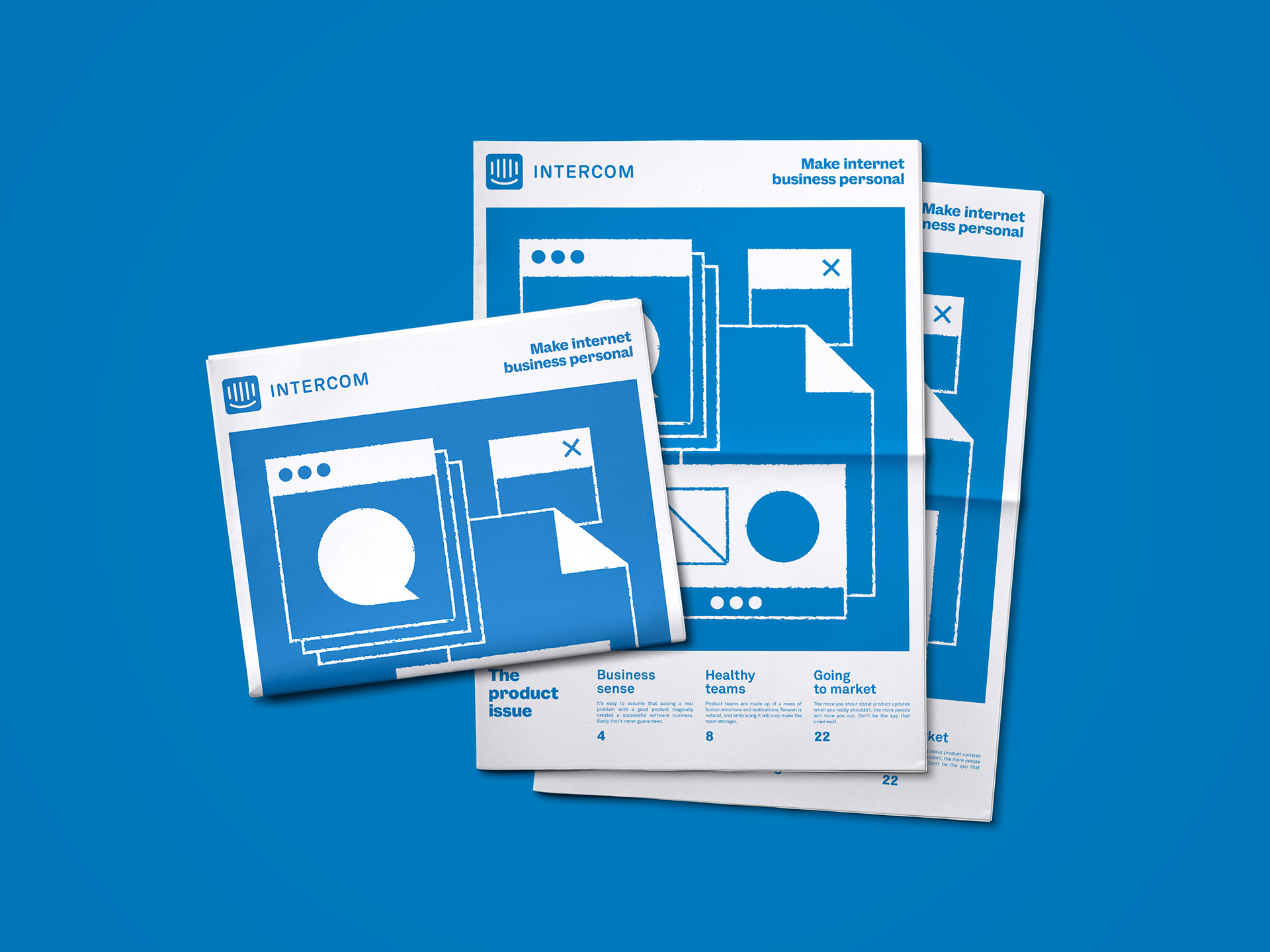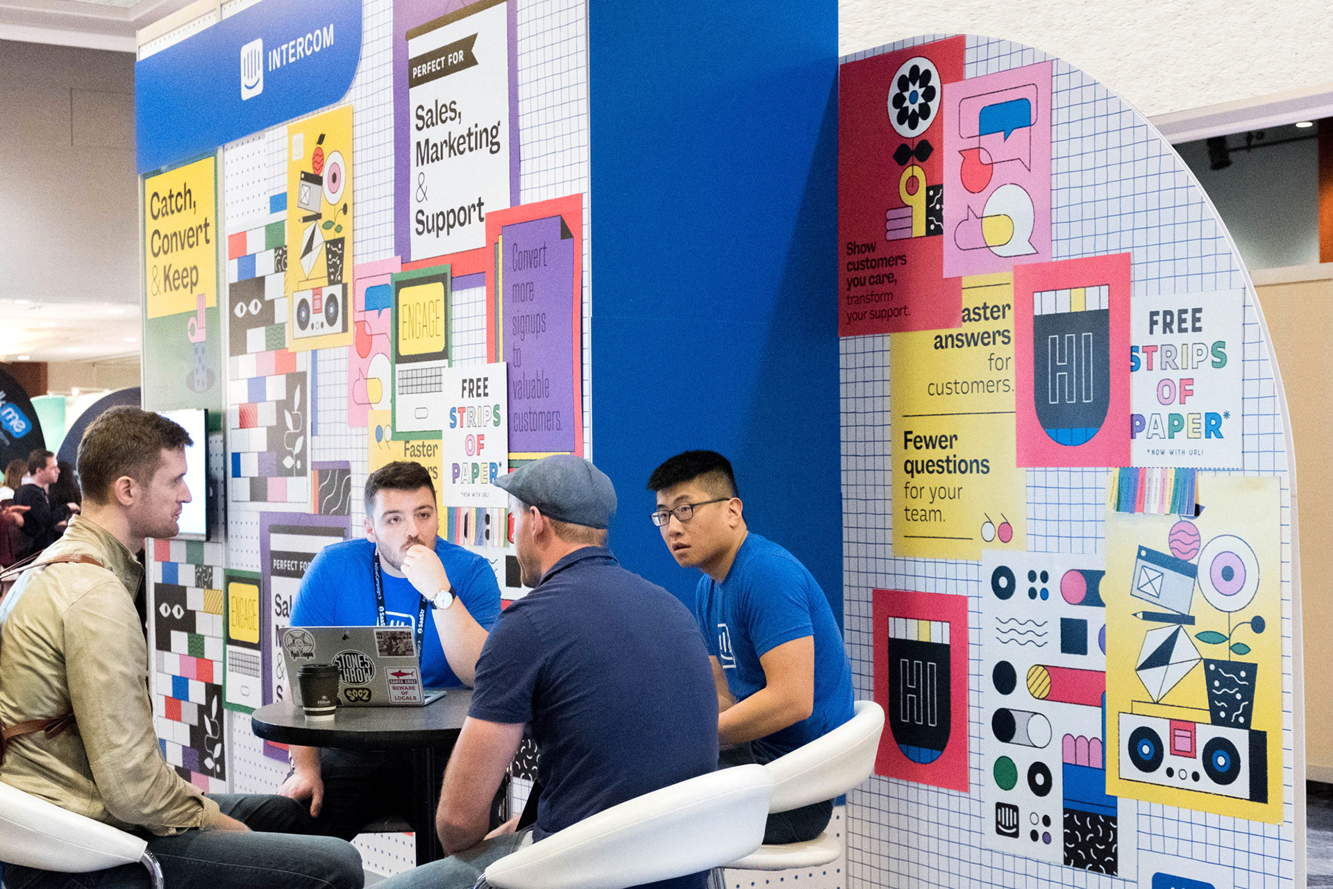 With a desire to make an impact at the annual SaaStr conference, we set Intercom apart by sharing their personality through a compelling storyline. A graphically modular system of layered posters, a daily newspaper, and a booth experience shifted from Intercom blue on day one to vivid full color on day two.