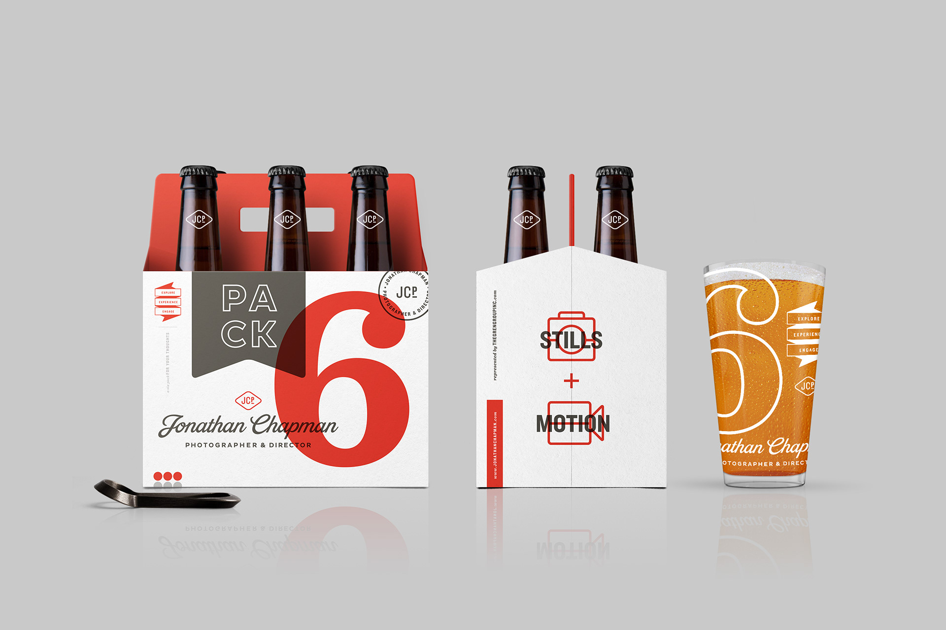 Chapman was one of a kind—a true craftsman behind the camera. It's only fitting that his brand tells that same story. Custom lettering depicts Jonathan's attention to detail and nuance while adding warmth and the personal touch indicative of his nature. JCP had a constant flow of projects and side hustles, so we built a library of elements to mix and match as needed across the brand. One of the highlights, A 6-pack for your Thoughts, was a playful way to reach out to fellow creatives and discuss the industry in a low-key way, just how Chapman liked it.