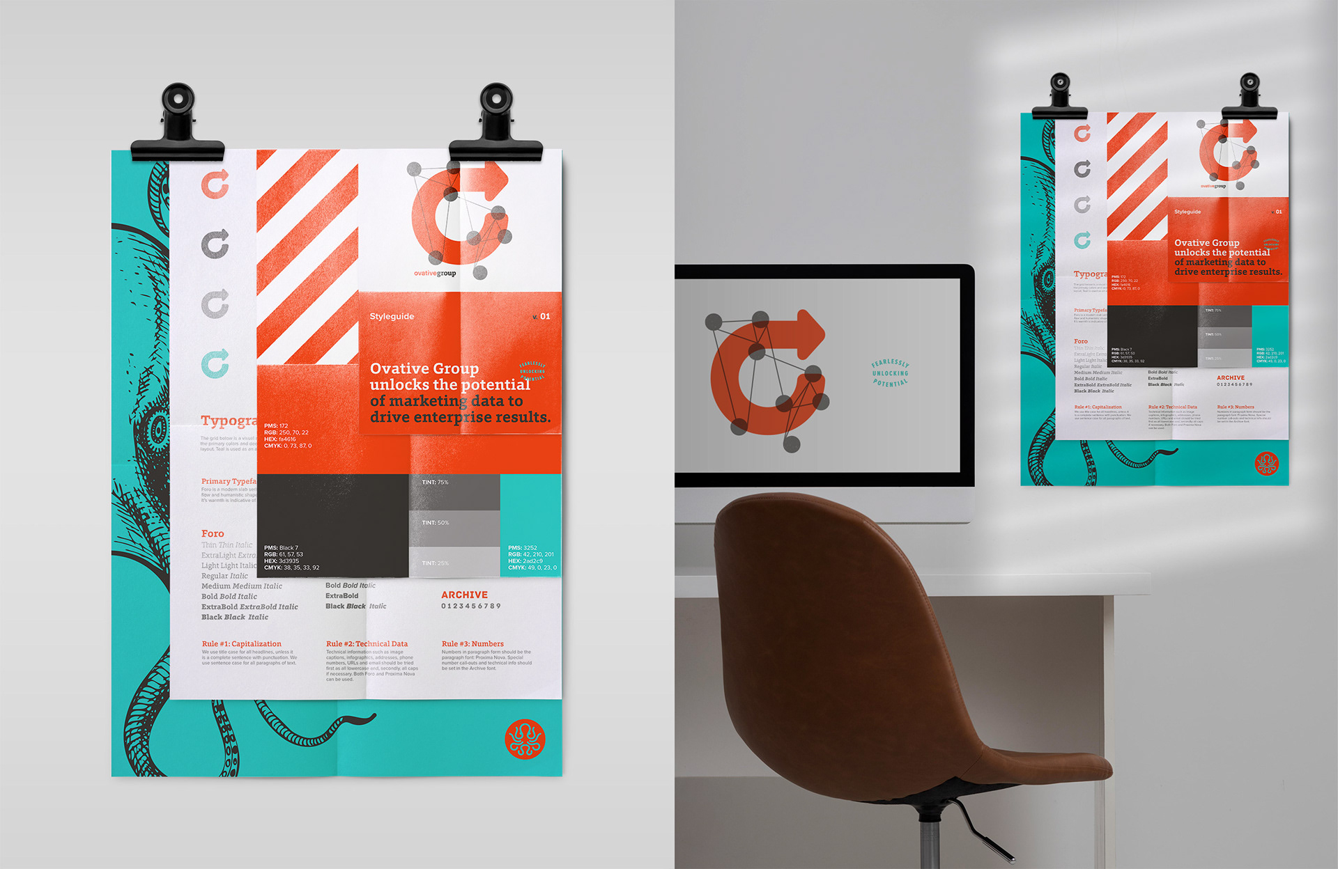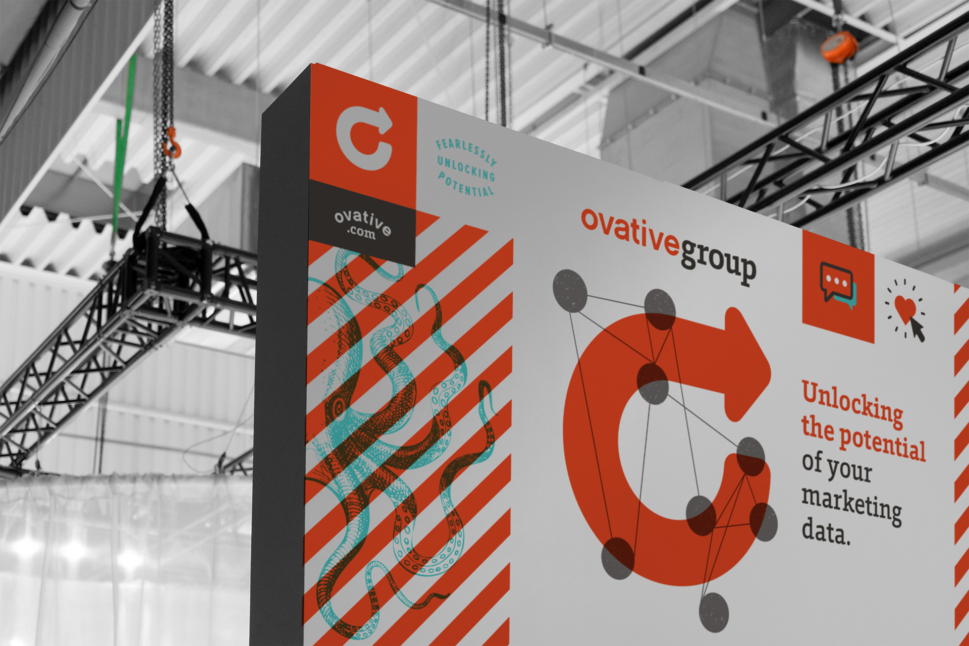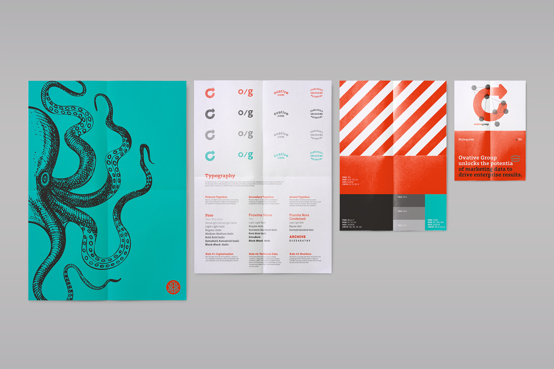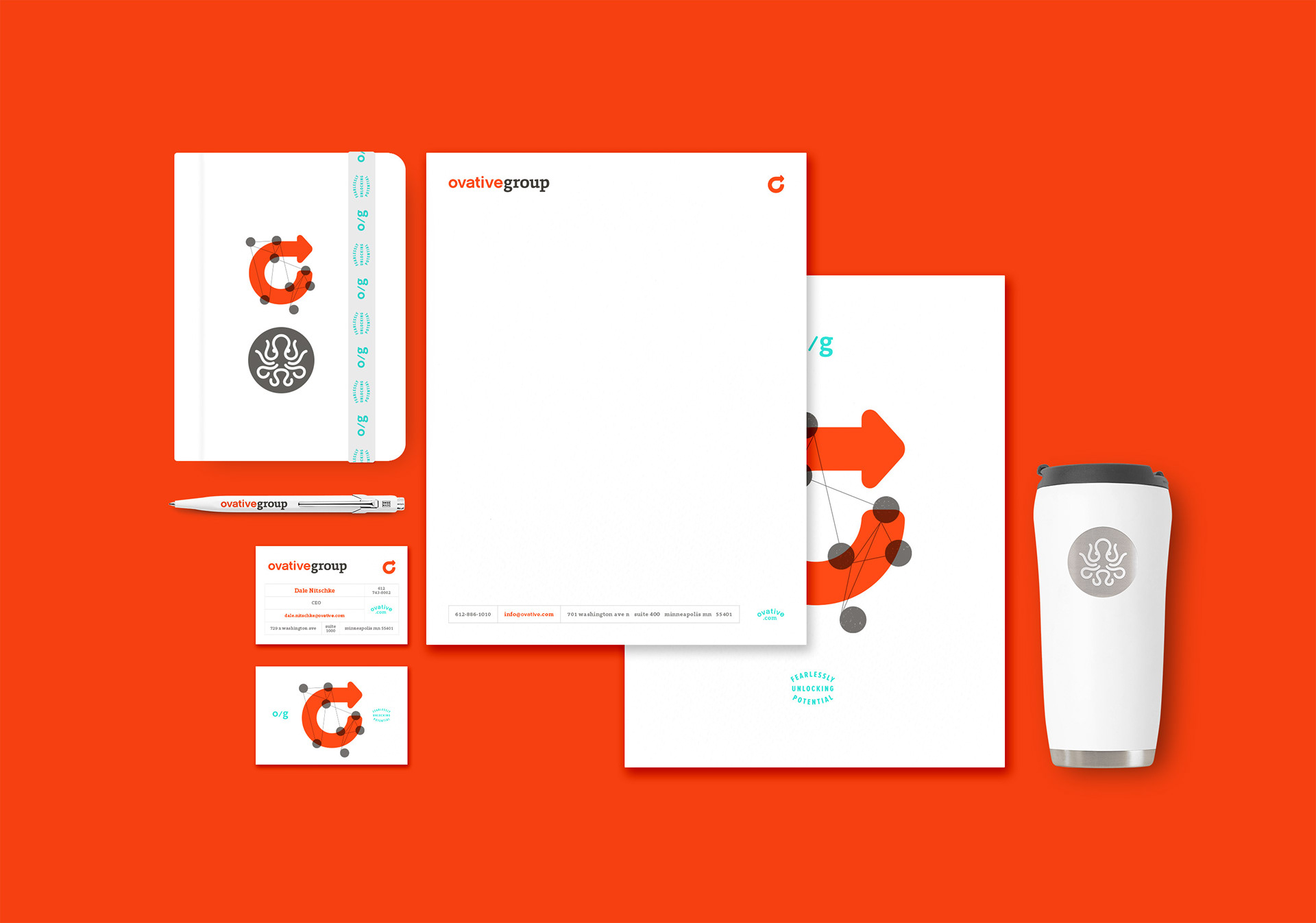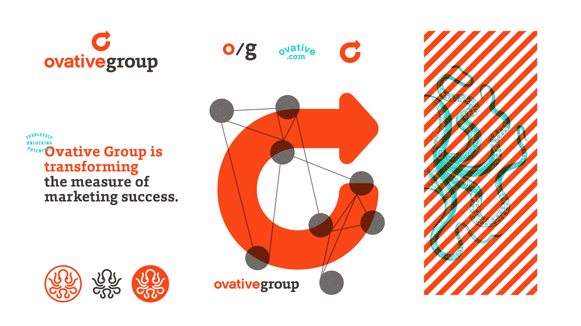 Ovative connects the complex dots of marketing analytics to drive measurable performance. The primary mark depicts a circular process of gathering information and linking (the dots) together in significant ways. Similarly, the octopus is their spirit animal: an intelligent problem solver untangling the tentacles of data.